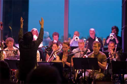 Touring is really hard. We did three dates in Europe last spring, which was really great, and we played for three completely different audiences. We played on the canals in Amsterdam, which was much more of a traditional jazz audience, then we played this club in Dortmund which was almost an industrial warehouse, a black box kind of show, and then the Moers Festival which happens in a big circus tent where a bunch of kids come to this small town in Germany and camp out on the lawn and see a bunch of freaky experimental music. So that was amazing, but we were very fortunate that we got a lot of support from the festival so that we could do those other gigs. They sprang for a bus for us and all that kind of thing. Touring Stateside is a lot harder, obviously, and I wish I could do more of it. I wish I could pack everyone up in a van and drive around and crash on people’s floors, but asking people to give up their freelance work in New York and their teaching and the stuff that actually pays their bills, and then asking them to go on the road and take the kind of financial hit that you would need to do that, and feed them and everything, it would bankrupt all of us. So what we’ve done so far is one-offs, like drive out to Philly, play a show, drive back. Drive up to Boston, play a show, drive back. And we’ll probably keep doing that. But I’m doing it—I don’t have a booking agent, I don’t have a manager—so even putting together a one-off in Baltimore or DC is a huge time investment which takes away from the time I can spend writing music for this band. And even the time it takes to generate a minute of music is so insane for this band, it’s really—I don’t know what I was thinking, other than the sound of that many musicians playing together got really, really addictive for me. When we have a really great gig, it gets into my veins and I just can’t stop. If I looked at it rationally, there’s no way I could defend anything that I’ve done, the choices I’ve made about how to make music and where to play it and who to play it for. But it just became this irresistible urge. So I’m trying to find the best balance that I can. So to get back to touring, we want to get out to more East Coast places that are within striking distance of New York and get some one-offs there, but it’s still through word of mouth, playing. Playing shows in other cities is the best possible thing we can do for the band and also one of the most punishing things we can do for the band. So it’s a matter of trying to find the right time, place, city and whatnot to make that happen. And then of course sometimes I’ll go and like, I’m about to head off to Germany and do shows with some German musicians in Cologne and at the North Sea Jazz Festival. And that’s a whole other ball of wax, and that requires an enormous amount of rehearsal, a huge time commitment on the part of players who haven’t spent the last five years learning to play this music. Trying to get it together, even with the best musicians in the world with three long days of rehearsal, is kind of a big, stressful thing for everyone. But it’s also kind of an exciting thing to be able to say, “All right, let’s see what we can make happen in this short period of time. Immerse yourself in it and let’s see what happens.” And I’m really lucky that this group I’m doing these gigs with is a group I got to work with before—they’re like a European big band that’s a lot more like an American band. It’s not a radio band. They get together once a month to play these gigs, playing charts written by people in the band, and they’re in it for the love of playing in challenging and interesting large ensembles, as opposed to the guys who are doing radio bands, where it’s more like a day job. So it’s nice to be able to go and work with these Cologne guys, cause they’re in it for the love.