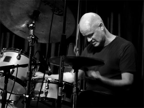 This was one of the few times that Bisio and Dickey genuinely seemed to be working together. If trios necessarily divide into two-against-one, the piano and bass were definitely the two for this performance, with Dickey off on his own, head down, eyes closed and sticks flying.